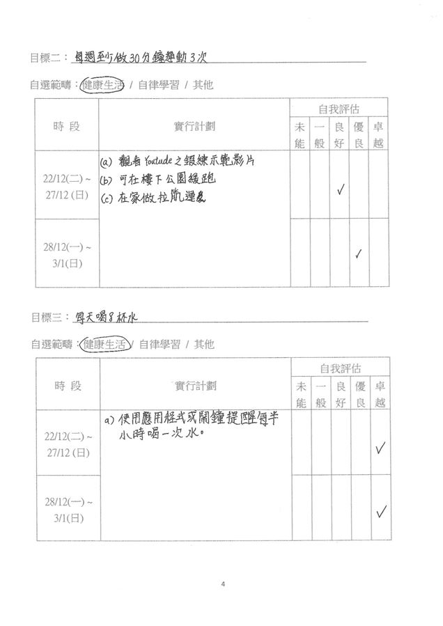 同學實踐目標的計劃及評估