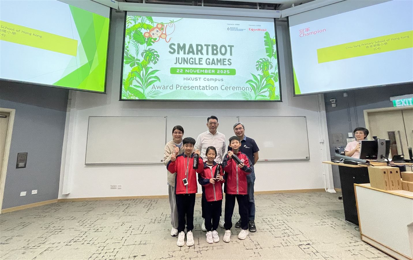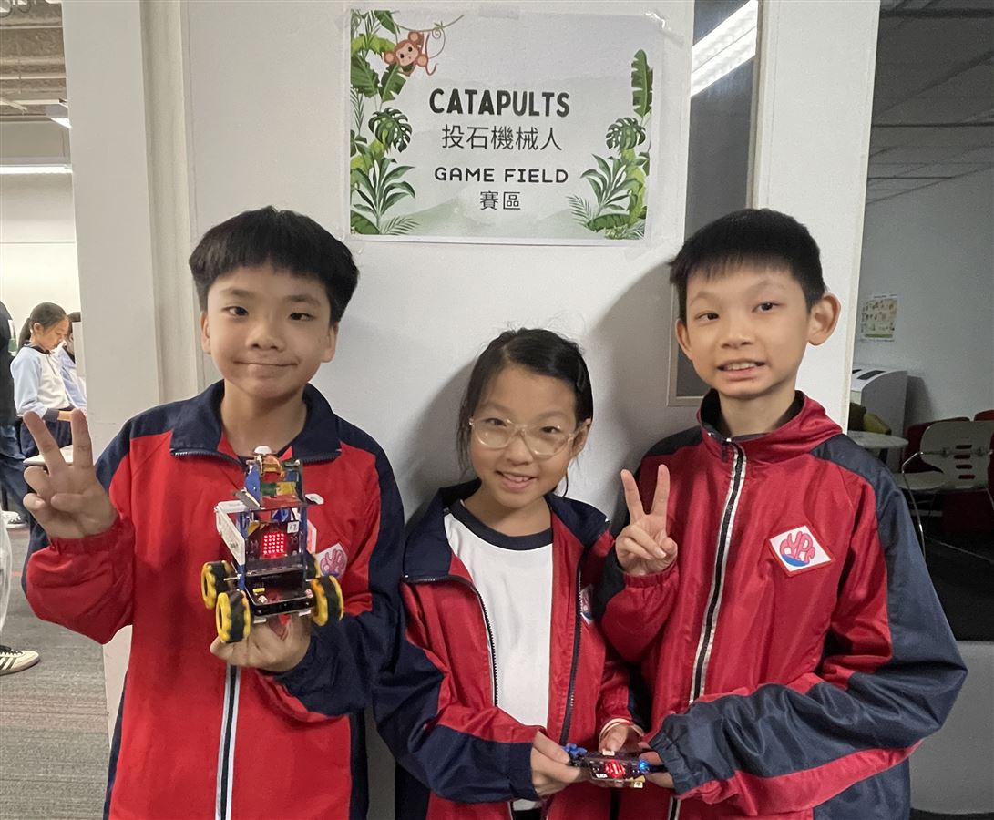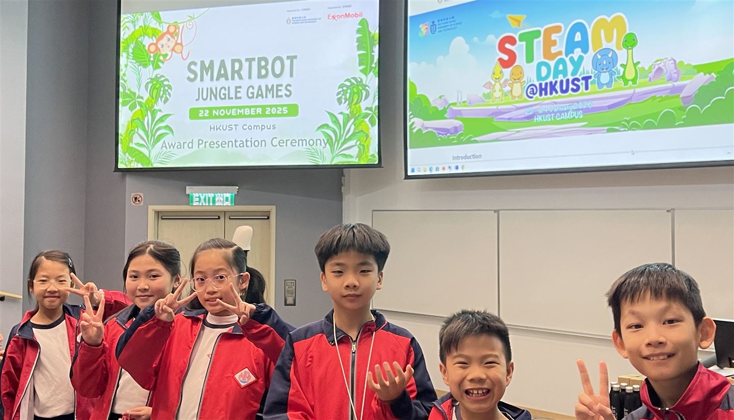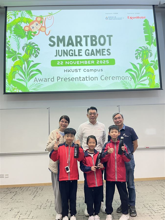 本校六位同學於11月22日參加了由香港科技大學舉辦的HKUST-ExxonMobil iSTEAM Program 2025-Smartbot Jungle Games,學習了有關「尋磁機械人」及「投石機械人」的編程活動。在18支參賽的中小學隊伍中,我校隊伍榮獲「投石機械人」項目的冠軍。恭喜獲獎的同學們!