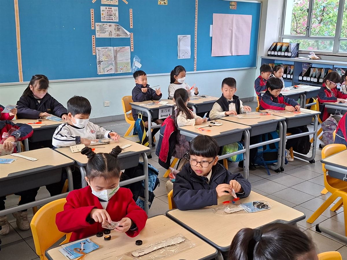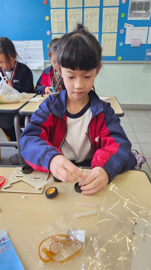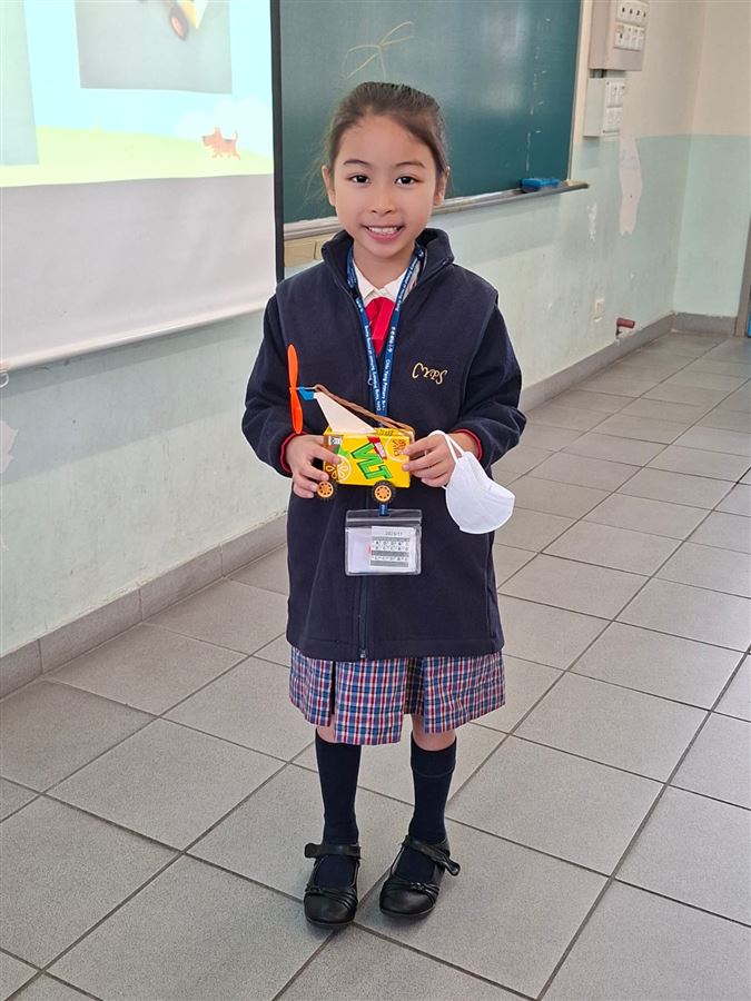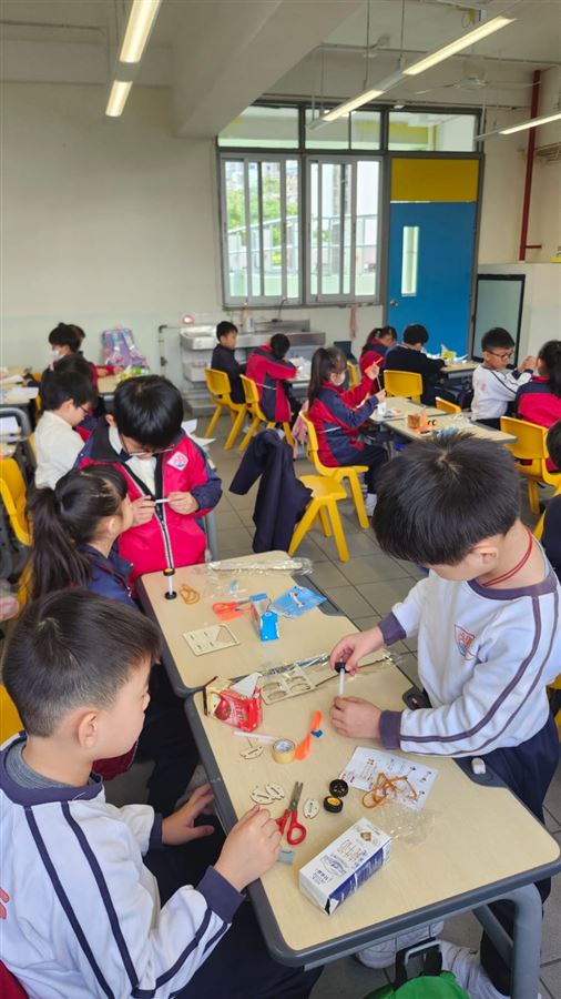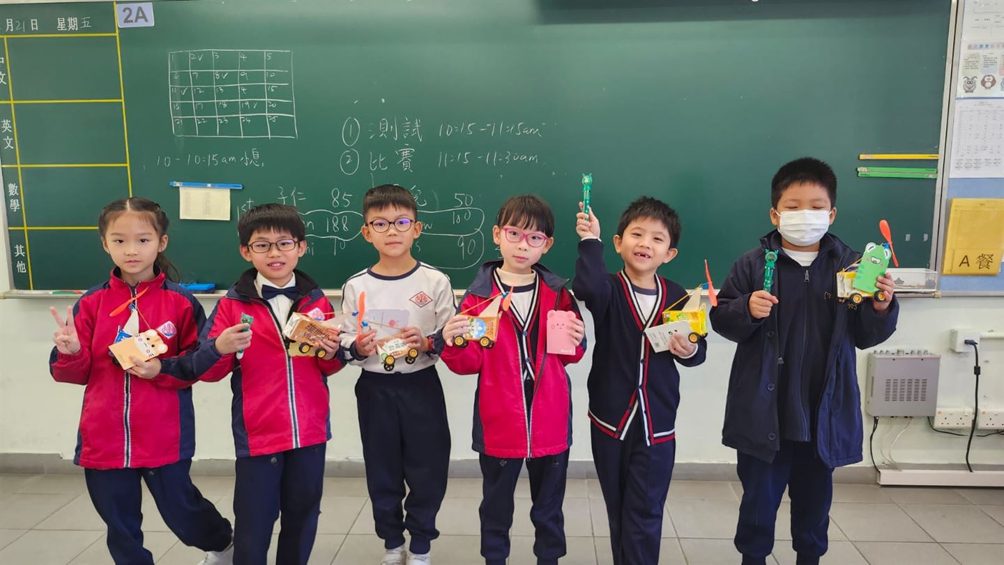 本次二年級STEAM DAY以「環保動力車」為主題。學生運用塑膠瓶、紙盒等廢棄材料,動手設計並組裝車輛。過程中,孩子們透過測試與調整,探索影響速度與穩定性的原理,並將科學知識融入創意實踐。活動最終以趣味競賽作結,讓學生展示獨特的作品與學習成果。